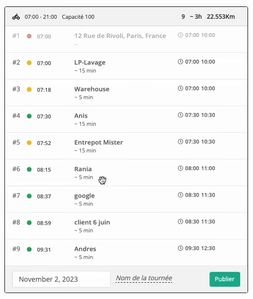 Vous pouvez modifier vos tournées manuellement et observer l’impact sur le parcours.